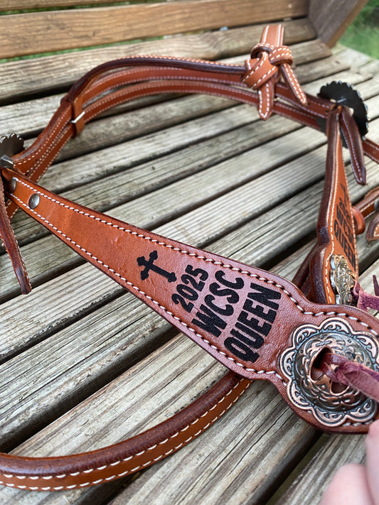 Custom Laser Engraved Knotted Browband Headstall - Personalized Western Tack